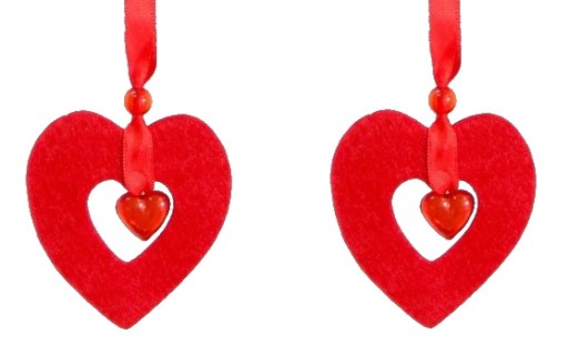 - 2 zawieszki - serca filcowe o rozmiarze 6,5 x 7 cm