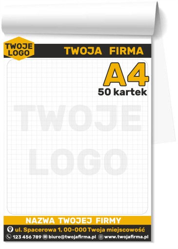 NOTESY KLEJONE z nadrukiem A4 BLOCZKI 50-kartkowe TWOJE LOGO 500 sztuk