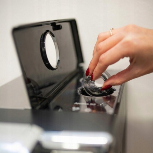 Aby uzyskać jak najlepszy efekt czyszczenia / odłuszczania ekspresu, należy umieścić tabletkę AquaFloow Tab w otworze na kawę mieloną.