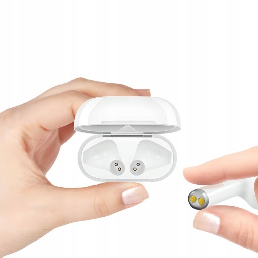 Nowoczesny sprzęt został zapakowany w pudełko, które posiada funkcję powerbanku, dzięki temu będziesz mógł sprawnie naładować słuchawki, telefon, a także inne urządzenia. Stacja ładująca sprawi, że Twój telefon i słuchawki zawsze będą gotowe do pracy. Wejścia słuchawek posiadają magnesy, aby dobrze ulokować słuchawkę w porcie ładowania, dzięki czemu nie wypadną z etui. Jakość wykonania materiału pozwala na swobodne noszenie urządzenia w kieszeni spodni lub torebce.