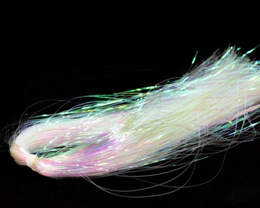 Tinsel Flash Hair to klasyczny materiał używany głównie jako dodatek do najrozmaitszych streamerów. Stosuje się go też na przewijki , korpusy i rozmaite dodatki do różnorodnych much. Często wykonuje się z niego także pochewki nimf, z jednego lub kilku pasm. Płaskie włókna mają bardzo mocny perłowy połysk. Są wiotkie i bardzo fajnie pracują w wodzie, dając "długie i miękkie" refleksy świetlne. Doskonałe jako dodatek do skrzydeł na wszelkie drapieżne ryby. Pakowane w pęczki.