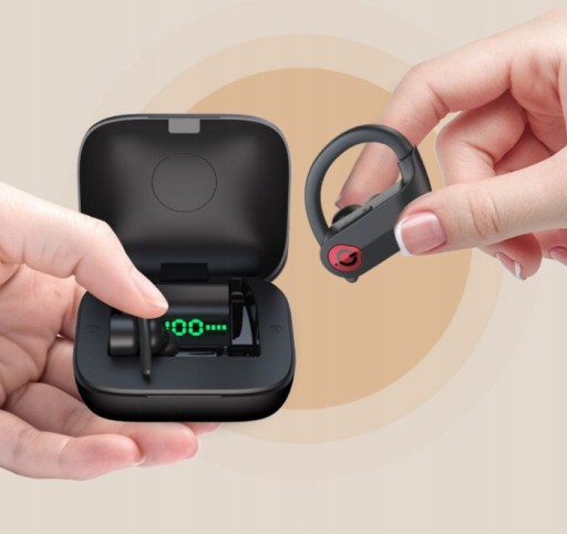 SPORTOWE SŁUCHAWKI BEZPRZEWODOWE + ETUI POWERBANK