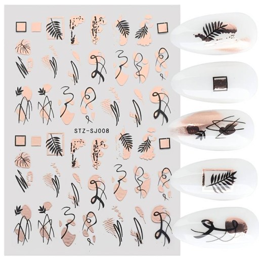 NAKLEJKI NA PAZNOKCIE SAMOPRZYLEPNE ZYGZAK LIŚĆ LIŚCIE NAKLEJKA STZ-SJ008