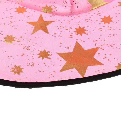 Typ artykułu: różowa peleryna ze złotą gwiazdą i spiczastym kapeluszem wiedźmy