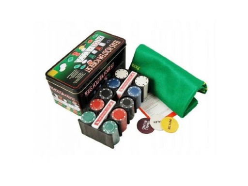 - 200 żetonów (z różnymi nominałami 5,10,20,50,100)