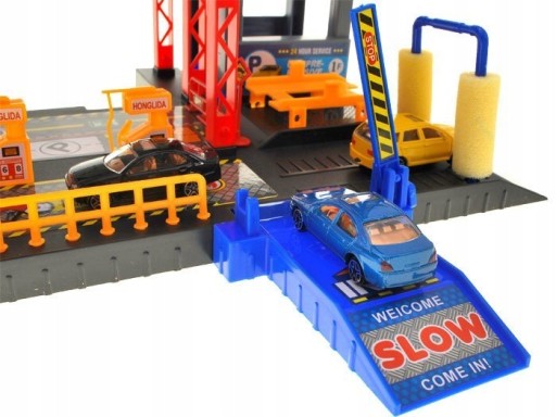 Gdy chcesz naprawić swój samochód skorzystaj z podnośnika, dzięki któremu naprawisz zawieszenie czy zmienisz oponę. Zestaw zawiera wiele dodatkowych elementów wspaniale urozmaicających zabawę, takich jak znaki drogowe, pachołki.