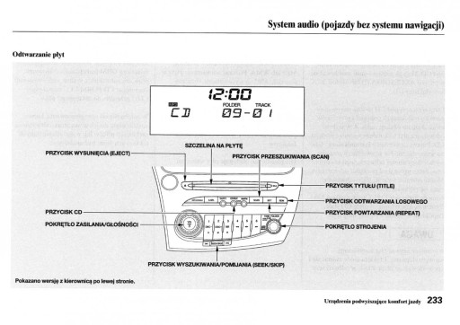 Instrukcja obsługi Hondy zawiera wszystkie wersje wyposażenia oraz przydatne informacje jak sprawnie i bezpiecznie użytkować pojazd np.-wskaźniki, lampki kontrolne, otwieranie i zamykanie-oświetlenie i widoczność, fotele, schowki, ogrzewanie, wentylacja, klimatyzacja-jazda, wskazówki eksploatacyjne, konserwacja pojazdu-poziomy płynów, sprawdzanie i uzupełnianie, czynności awaryjne, wymiana kół, bezpieczniki, wymiana żarówek-dane techniczne... oraz wiele wiele innych rzeczy, które dają poczucie bezpieczeństwa oraz komfortu podróżującym. Polskie prawo nakłada na sprzedawcę obowiązek dołączania instrukcji obsługi auta w języku polskim do . Instrukcja obsługi auta jest nowa i w języku polskim.