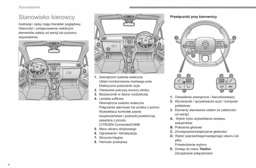 Instrukcja obsługi Citroen zawiera wszystkie wersje wyposażenia oraz przydatne informacje jak sprawnie i bezpiecznie użytkować pojazd np.-wskaźniki, lampki kontrolne, otwieranie i zamykanie-oświetlenie i widoczność, fotele, schowki, ogrzewanie, wentylacja, klimatyzacja-jazda, wskazówki eksploatacyjne, konserwacja pojazdu-poziomy płynów, sprawdzanie i uzupełnianie, czynności awaryjne, wymiana kół, bezpieczniki, wymiana żarówek-dane techniczne... oraz wiele wiele innych rzeczy, które dają poczucie bezpieczeństwa oraz komfortu podróżującym. Polskie prawo nakłada na sprzedawcę obowiązek dołączania instrukcji obsługi auta w języku polskim do . Instrukcja obsługi auta jest nowa i w języku polskim.