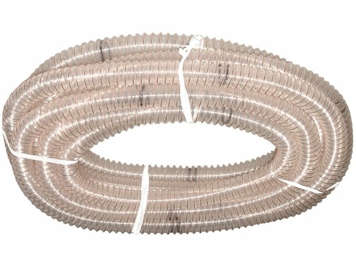 Wąż spiralny odciągowy 2PU-PUR wykonany jest z mieszanki przezroczystego poliestru z poliuretanem, wzmocniony spiralą z drutu stalowego, który zapewnia odporność na podciśnienie. Zakres temperatury pracy wynosi od -40°C do +90°C. Wąż wentylacyjny przeznaczony jest do odprowadzania gazów, oparów różnych substancji chemicznych, pyłów, dymów, trocin, materiałów sypkich. Posiada wysoka wytrzymałość na rozciąganie i rozrywanie.