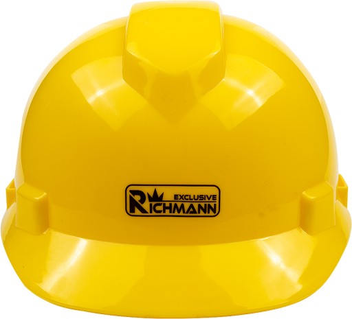 - Wysokiej jakości budowlany kask ochronny w kolorze żółtym.