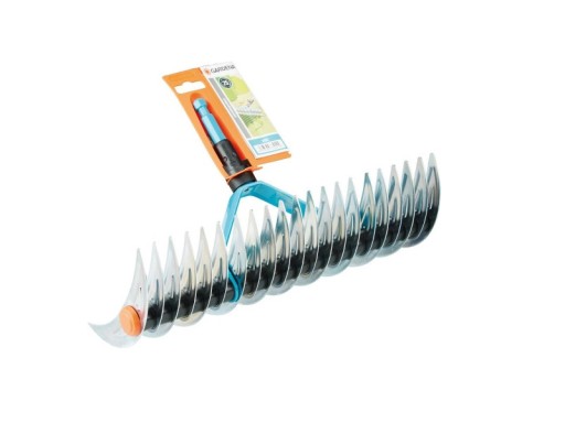 GARDENA combisystem - wertykulator wyposażony jest w ostre zęby o szerokości pracy 35 cm znajdujące się po jednej stronie narzędzia wchodzą w grunt na głębokość kilku milimetrów, umożliwiając usuwanie mchu i darni. Okrągłe, wąsko rozstawione zęby po drugiej stronie narzędzia służą do zgrabiania liści, odpadów, a nawet kamieni. Wszystkie zęby są cynkowane i tłoczone, a tym samym odporne na korozję. Pasuje do wszystkich trzonków GARDENA combisystem.