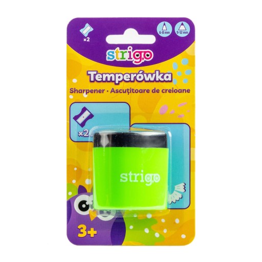 ⚙️ Idealnym rozwiązanie tego problemu jest kolorowa podwójna temperówka STRIGO, w której znajdują się aż dwie grubości ostrza idealne do ostrzenia dużych i małych średnic ołówków oraz kredek.