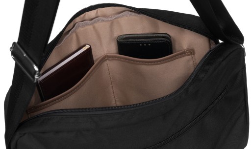Dodatkowo w środku wyszyte zostały także dwie otwarte kieszenie np. na smartfona czy dokumenty