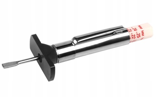 Wystarczy włożyć metalową końcówkę w bieżnik opony, docisnąć czarną, płaską krawędź do powierzchni opony i odczytać wynik.