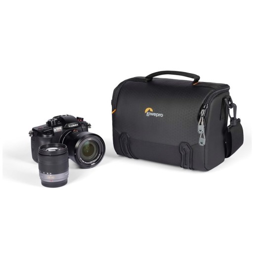 SH 140 III to torba przeznaczona na bezlusterkowca z obiektywem (np. Fujifilm XT200, Canon M50 MII, EOS R10, Nikon Z50), dodatkowy obiektyw oraz mniejsze akcesoria takie jak baterie i karty pamięci.