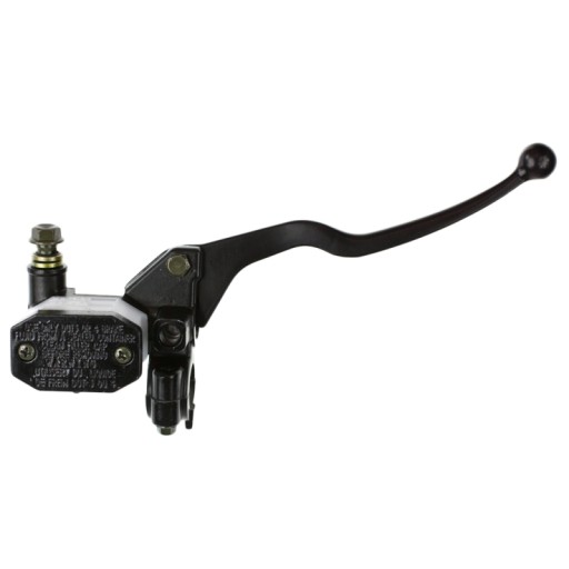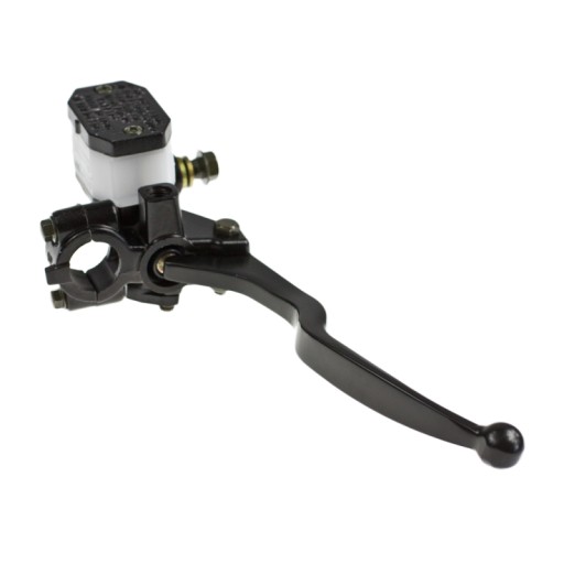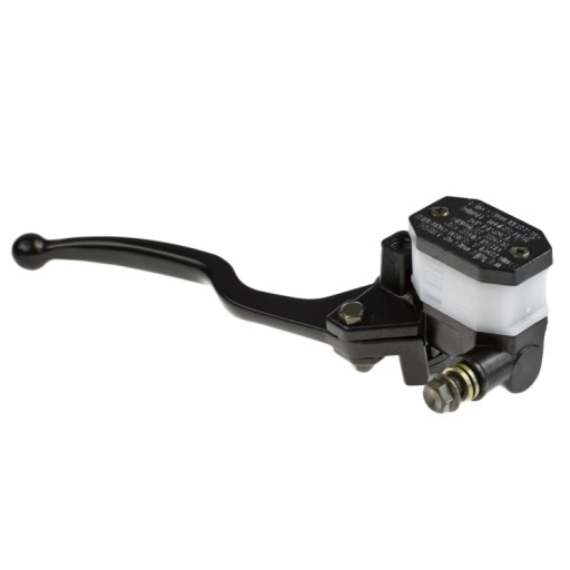 Pompa hamulcowa, ze zbiorniczkiem hamulcowym i miejscem na lusterko, uniwersalna. W większości stosowana w chińskich motorowerach. W zestawie ze śrubą przewodu hamulcowego wraz z podkładami uszczelniającymi i czujnikem światła STOP.