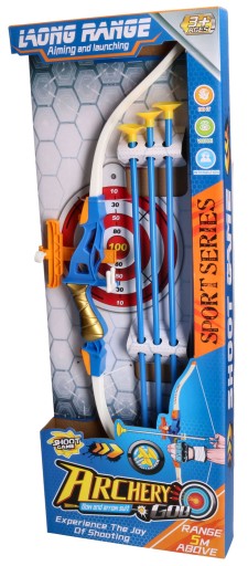 Wykonany z plastiku a strzały zakończone są miękką gumową przyssawką.