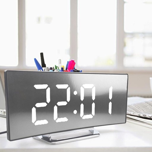 Doskonale widoczne cyfry, wyświetlane są w technologi LED. Jasność cyfr możemy ustawić samodzielnie lub zegar sam ściemni się i dostosuje jasność po zmroku.