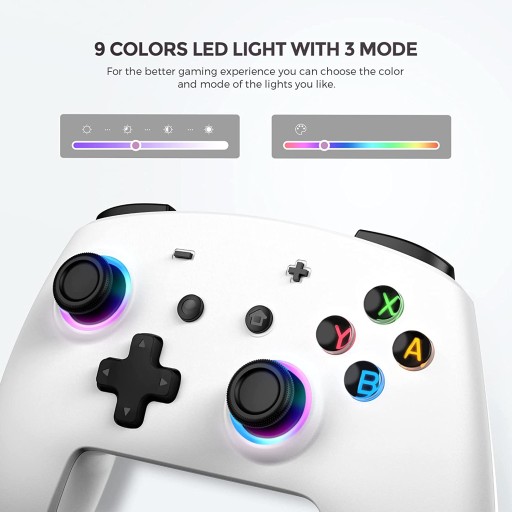 - Kontroler SWITCH z diodami LED: ECHTPower Switch Controller został zaprojektowany specjalnie dla lepszych wrażeń podczas gry. Wbudowane diody LED w dwóch joystickach i przyciski A/B/X/Y zapewniają lepszą atmosferę podczas gry. Joysticki pierścieniowe są otoczone 9 kolorowymi światłami i oferują 3 tryby oświetlenia, można zmieniać kolor w zależności od nastroju lub gry.