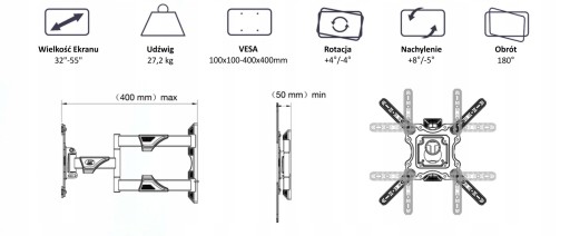 Obrotowy Uchwyt na Telewizor 32-55 Cali