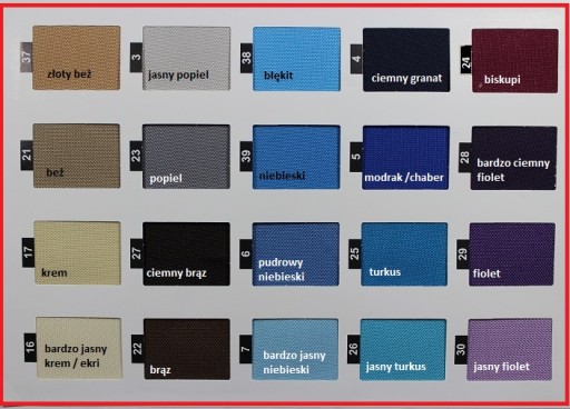 KOLORY NA TKANINIE: 40 KOLORÓW DO WYBORU