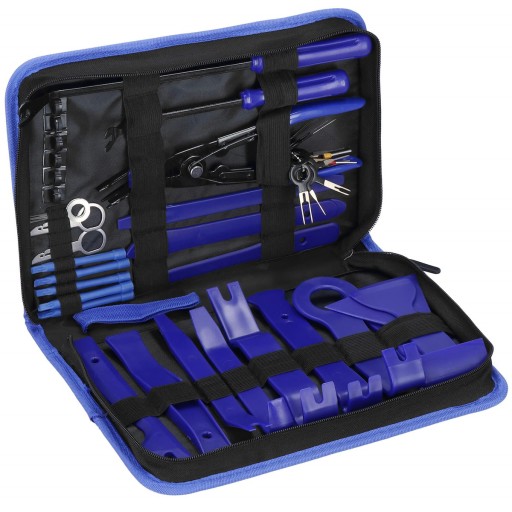 Gdy zapragniesz zdemontować tapicerkę w swoim samochodzie, nie obejdzie się bez naszego zestawu narzędzi! Ten komplet przydatnych wyjmaków, łyżek i dźwigni pomoże Ci w pracach mechanicznych takich jak wyjmowanie radia samochodowego czy rozbieranie sprzętu elektronicznego. Jeśli jesteś zatrudniony w serwisach samochodowych, lakierniczych czy tapicerskich, taki produkt to dla Ciebie absolutny must have!