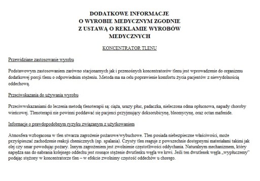- najcichszych (głośność poniżej 45 dBa) produkowanych obecnie stacjonarnych koncentratorów tlenu.
