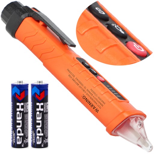 ⭐Indukcyjny (bezdotykowy) tester napięcia, za pomocą którego wykryjemy prąd stały i zmienny w zakresie 12-1000 V.