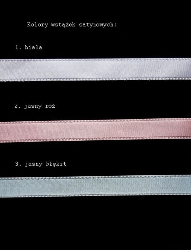 4. Kolor wstążki do wyboru: biała. jasny róż, jasny błękit