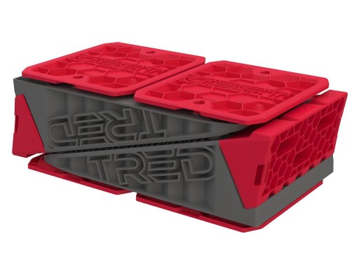 Zestaw poziomujący NEW TRED GT został zaprojektowany, aby bezpiecznie i łatwo poziomować przyczepę kempingową, kampera lub samochód z zamontowanym namiotem dachowym. Wyprodukowany w Brisbane Australia z wysokiej jakości polipropylenu, odpornego na promieniowanie UV. Konstrukcja zapewnia maksymalną przyczepność do opony, a także zapewnia bezpieczne umocowanie w terenie. Zestaw posiada unikalny system TRED-LINK do łączenia elementów razem aby ułatwić przechowywanie i transport.