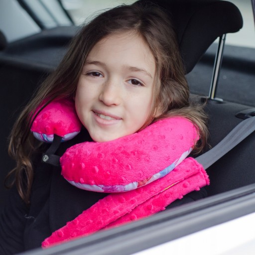 Dzięki zapięciu na nap poduszka nie wędruje po samochodzie tylko może zostać wpięta w zagłówek lub przypięta do pasa.