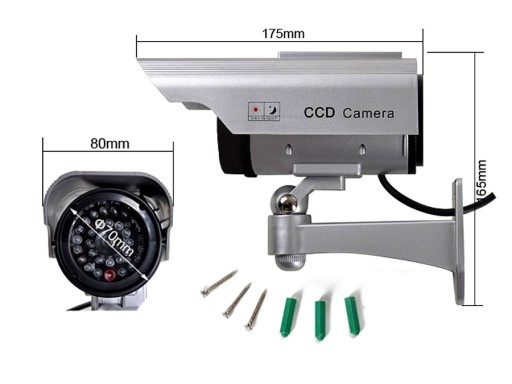 Bardzo wierna kopia oryginalnej kamery z imitacją diód IR i diodą świecącą na czerwono. Jej wykonanie cechuje się wysoką jakością użytych materiałów i dbałością o szczegóły. Całość wygląda bardzo realistycznie, nawet instalator kamer z wieloletnim doświadczeniem nie jest w stanie odróżnić czy to prawdziwa kamera czy atrapa. Dzięki panelowi solarnemu nie musisz się martwić o akumualtorki, ponieważ będą ładowane codziennie przez panel (zasilanie: panel solarny, lub dodatkowe akumulatorki AA nie dołączone do zestawu).