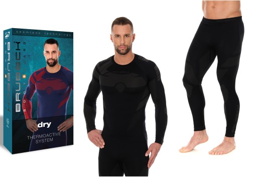 Brubeck Dry / komplet męskiej bielizny termoaktywnej z koszulką z długim rękawem - został wykonany w technologii bezszwowej z dwuwarstwowej oddychającej dzianiny. Warstwa wewnętrzna odprowadza wilgoć na zewnątrz, zapewniając komfort nawet podczas intensywnego wysiłku. Warstwa zewnętrzna pełni funkcję termoizolacyjną, chroni przed przenikaniem chłodnego powietrza do wewnątrz oraz przed naturalną utratą ciepła. W strefach o wzmożonej potliwości zastosowano strukturę siatki oraz kanały wentylacyjne wspomagające transport wilgoci. Odzież posiada właściwości antyalergiczne i bakteriostatyczne. Kolekcja DRY przeznaczona jest do całorocznego użytkowania, polecana w szczególności do biegania, jazdy na rowerze, turystyce oraz innych aktywności outdoorowych w okresie przejściowym.