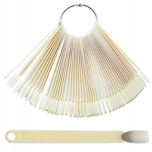 50 pojedynczych tipsów do prezentowania kolorów w rozmiarze zbliżonym do naturalnych paznokci.