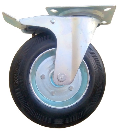 Koła mocowane na tzw. płytkę są połączeniem widelca wykonanego z tłoczonej blachy stalowej oraz koła z piastą stalową i oponką z pełnej, czarnej gumy. Głowica skrętna widelca jest podwójnie ułożyskowana oraz jest zabezpieczona przed zabrudzeniem specjalnym uszczelnieniem przeciwpyłowym. Wszystkie elementy metalowe zestawu pokryte są antykorozyjną powłoką chromowo-cynkową.