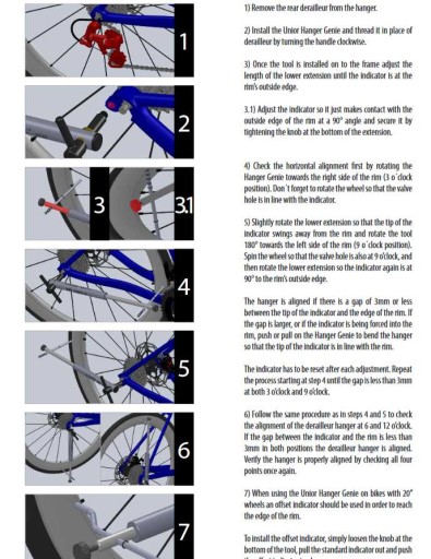 Przed rozpoczęciem pomiaru, należy sprawdzić i ewentualnie skorygować centryczność tylnego koła. Przyrząd jest łatwy w użyciu i bardzo dokładny. Jest on używany do sprawdzenia równoległości pomiędzy uchwytem a kołem i korygowania ewentualnej niedokładności.