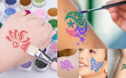 ZESTAW DO ROBIENIA ZMYWALNYCH BROKATOWYCH TATUAŻY