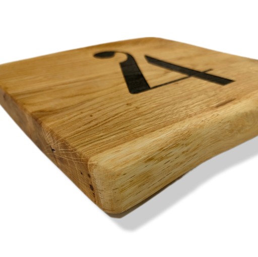Tabliczka wykonana jest z deski dębowej o wymiarach - długość 20cm, wysokość około 15cm, grubość około 2,5cm