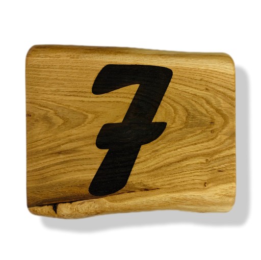 Wysokość cyfry to 12,5cm, wypalana laserowo.