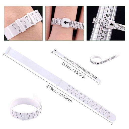 Plastikowy miernik rozmiaru pierścionków i bransoletek – tworzywo sztuczne; dokładny, standard amerykański