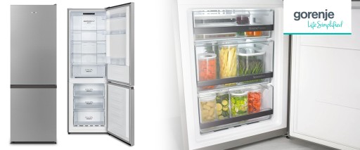 Energooszczędna wolnostojąca lodówka Gorenje w klasie energetycznej E, o szerokości 59,5cm i wysokości 178,5cm, z technologią No Frost Plus.