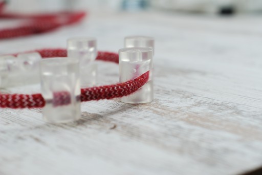 Uchwyty montuje się bardzo prosto, składają się z jednego elementu: korpusu, który przykręcamy do ściany, sufitu lub gdziekolwiek. Korpus przykręcamy za pomocą kołka który jest w zestawie - wciskamy kabel i gotowe.