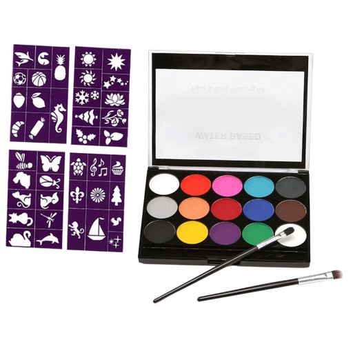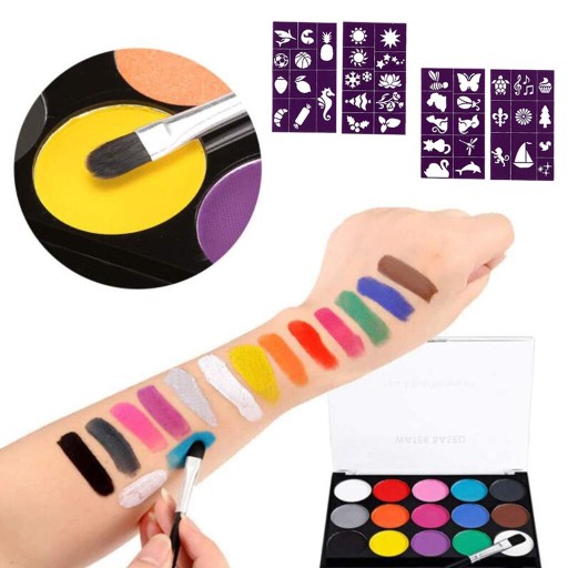 15 kolorów profesjonalne palety twarzy i malowanie ciała na bazie wody Face Art Halloween na imprezę Cosplay zestaw do makijażu scenicznego Opis:Ta profesjonalna farba do twarzy zawiera 15 kolorów i 2 pędzle, jasne i żywe kolory, pozwala stworzyć dowolny możliwy projektFarby do twarzy na bazie wody, łatwe do nałożenia i usunięcia, nietoksyczne i nie zawierają szkodliwych chemikaliów, zanurzają trochę wody w palecie, bardzo łatwo się mieszają, suszą w kilka minut później, I pozostań na kilka godzin. Po imprezie można ją zmyć wodą z mydłem.Działa wyjątkowo dobrze we wszystkich aspektach twarzy i malowanie ciała, takich jak praca liniowa, praca podstawowa, mieszanie i nakładanie warstw.Idealne na przyjęcia urodzinowe, festiwale muzyczne, karnawały, impreza z okazji halloween, teatr, imprezy tematyczne do makijażu kostiumów, występ na scenie, cosplay i inne okazje!Podobnie jak w przypadku wszystkich kosmetyków, proponujemy mały test skóry przed nałożeniem, ponieważ skóra każdego jest inna.Specyfikacja:Typ: malowanie twarzy kolor korpus (zestaw do malowania ciała twarzy)Materiał: tworzywo sztuczne + Pigment rozpuszczalny w wodzieRozmiar: (dxsxw) 14.5x10.5x1.3cm/5.7x4.1x0.5 calSzablon (dxs) 14x8cm/5.5x3.1 calCechy: szybkie do wyschnięcia, łatwe do czyszczeniaPakiet zawiera:15 kolorów paleta malarska4 sztuk szablony2 sztuk pędzleUwaga:1. Proszę pozwolić 1 ~ 3 cm błąd ze względu na pomiarze ręcznym, dzięki.2. Ze względu na różnicę między różnymi monitorami obraz może nie odzwierciedlać faktycznego koloru przedmiotu. Proszę zrozumieć, dziękuję.