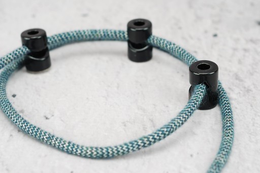 Uchwyty montuje się bardzo prosto, składają się z jednego elementu: korpusu, który przykręcamy do ściany, sufitu lub gdziekolwiek. Korpus przykręcamy za pomocą kołka który jest w zestawie - wciskamy kabel i gotowe.