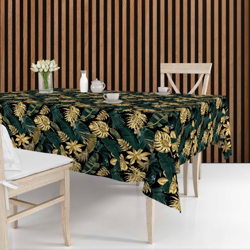OBRUS DEKORACYJNY 140X220 WZÓR ZIELONE LIŚCIE
