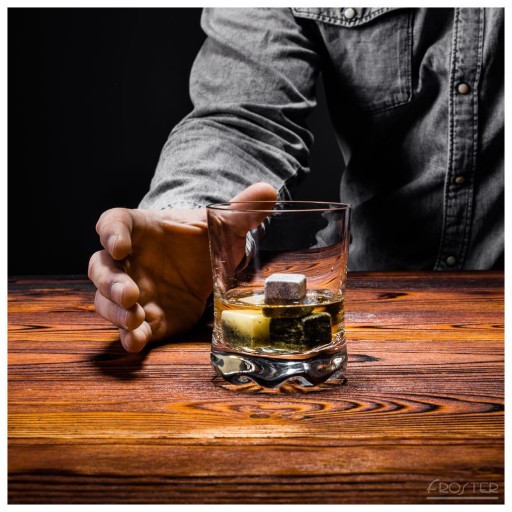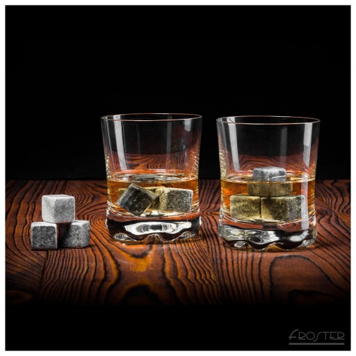 Ponieważ dobrymi chwilami warto się dzielić, zestaw tworzą dwie szklanki - abyś zawsze mógł rozkoszować się whisky w dobrym towarzystwie. W zestawie znajdziesz też kamienne kostki wykonane ze steatytu, które schłodzą whisky, jednocześnie nie zmieniając jej smaku. Dla wygody kostki wkładamy do zamrażalnika opakowane w dołączony do zestawu woreczek.