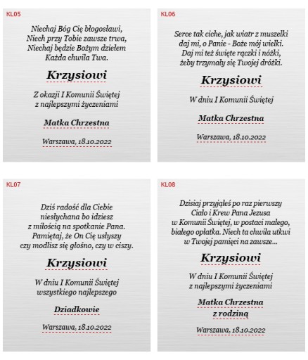 Przykładowe tabliczki na Pierwszą Komunię