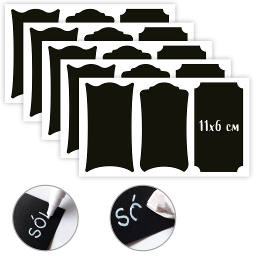 naklejki tablicowe kredowe 15szt 6x11cm + marker kredowy biały TOMA 1,5mm