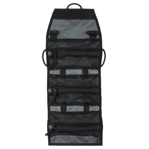 Zabezpieczana rzepem po zrolowaniu. Na wewnętrznej stronie ma 3 siatkowe kieszenie zapinane na zamek oraz kilka elastycznych szlufek. 3 pętle wykonane z linki pozwolą na powieszenie kieszeni, zapewniając łatwy dostęp do przenoszonych przedmiotów. Karabińczyk pozwala na łatwe przytroczenie np. do plecaka.