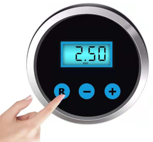 ✔ Ustaw żądane ciśnienie za pomocą wyświetlacz LCD. Przyciskiem R można zmieniać jednostki (PSI / BAR / KPA / Kg/cm3),